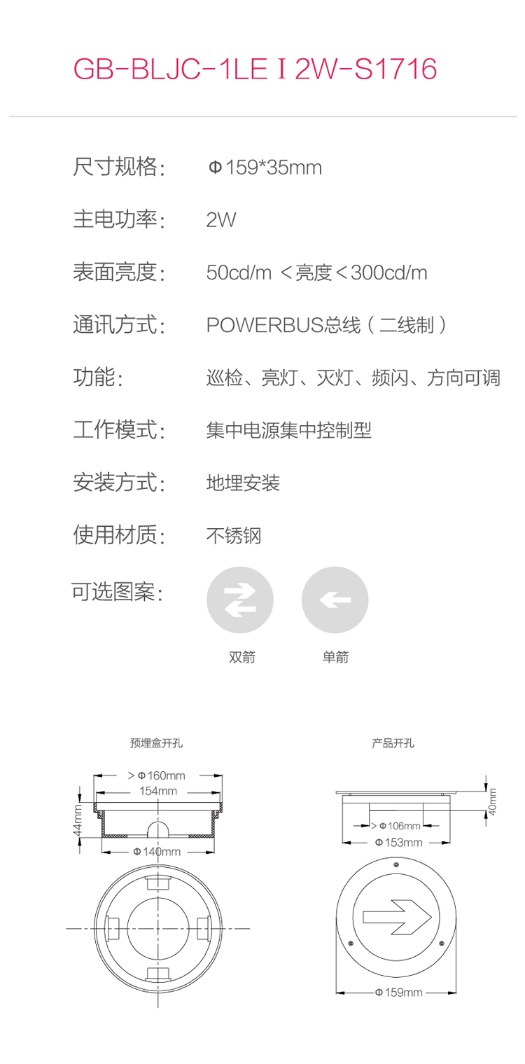 產(chǎn)品型號:S1716主電功率:2W安裝方式:地埋安裝防護等級:IP30產(chǎn)品尺寸:Φ159*35mm