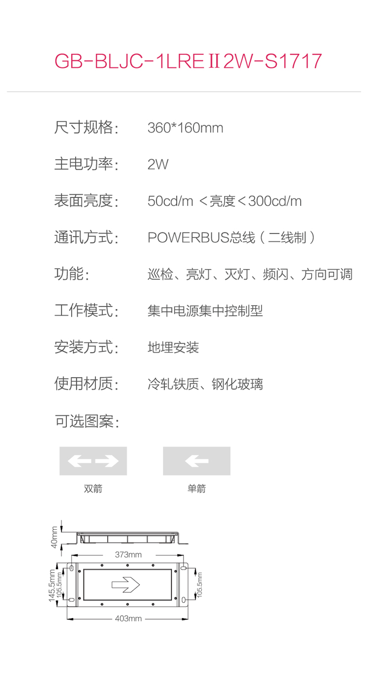 產(chǎn)品型號(hào):S1717主電功率:2W安裝方式:地埋安裝防護(hù)等級(jí):IP30產(chǎn)品尺寸:360*160mm