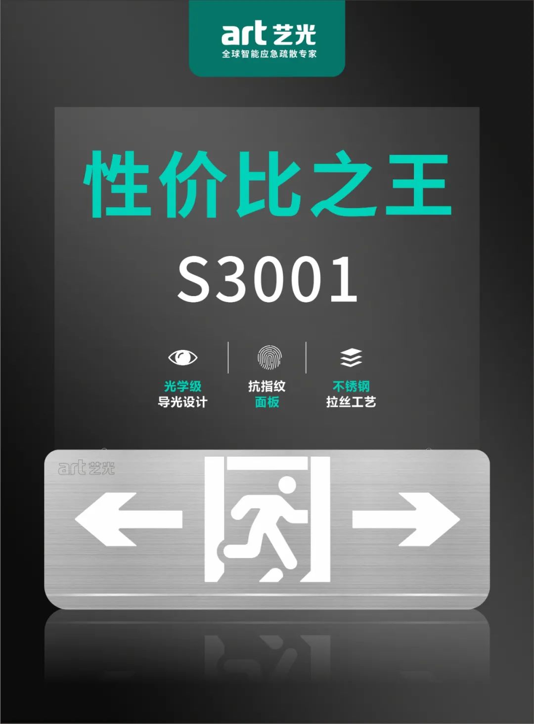 藝光新品S3001集中電源集中控制型消防應急標志燈,采用光學級導光設計,抗指紋面板和不銹鋼拉絲工藝,兼具品質(zhì)感和實用性,實屬智能應急疏散指示燈具性價比之王。