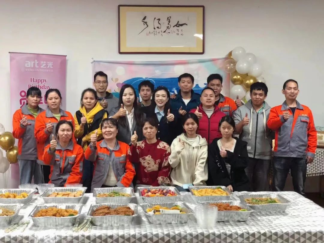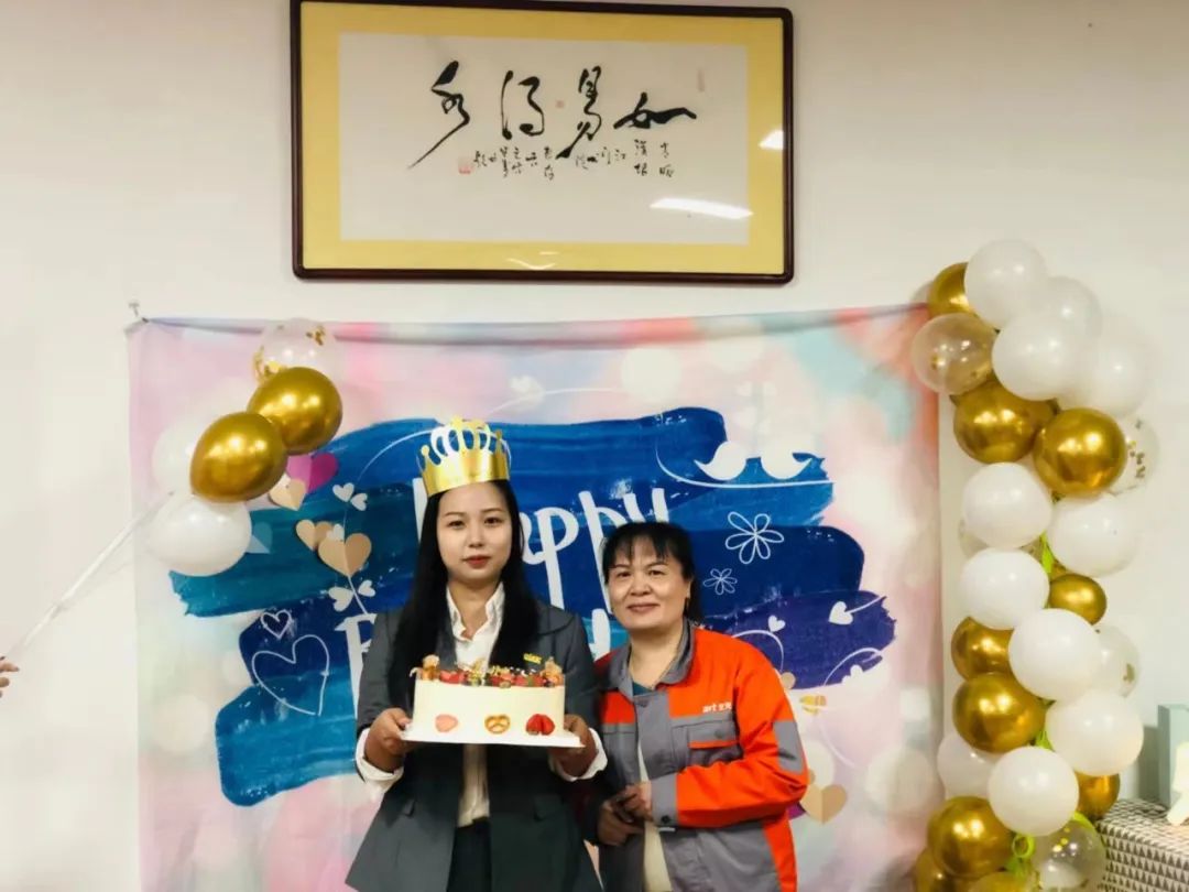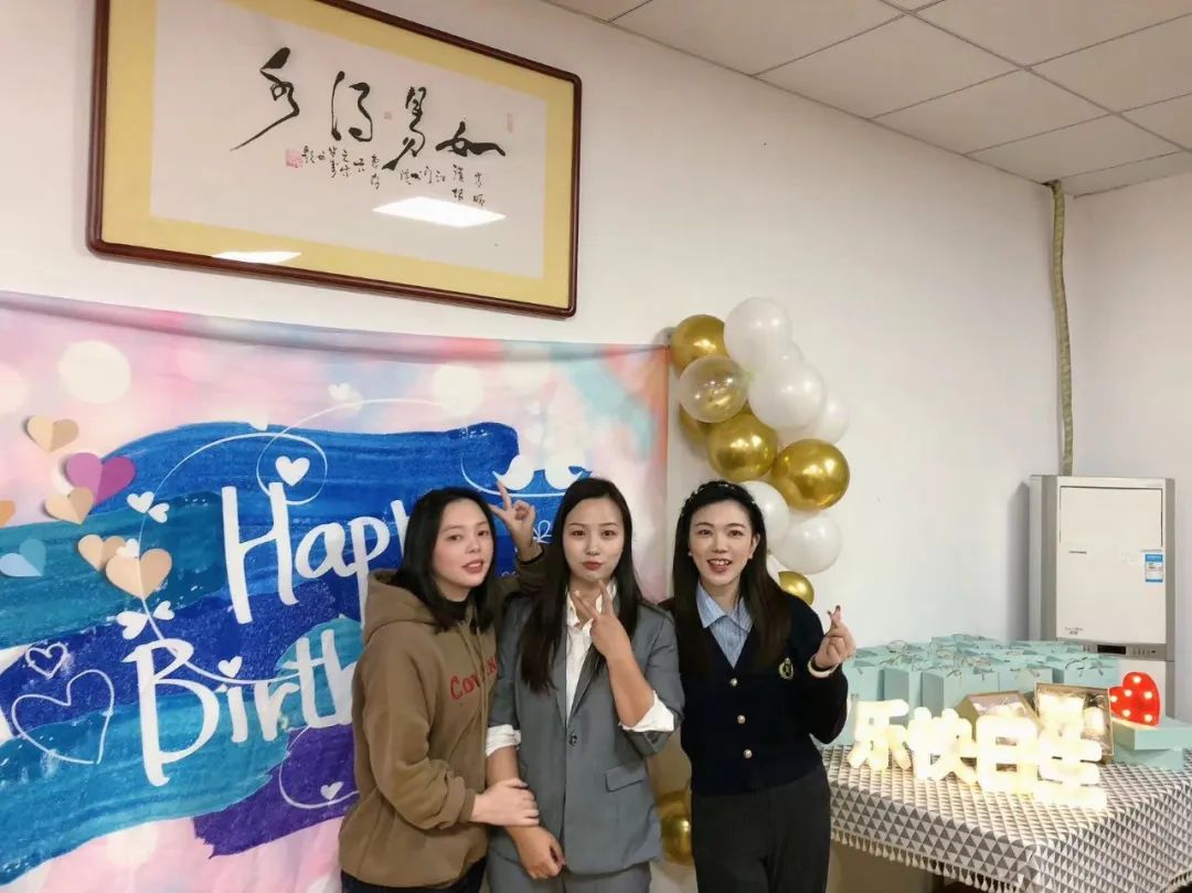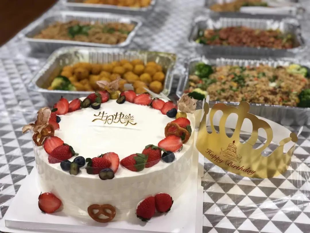 公司為生日伙伴呈上了精美的蛋糕和別出心裁的禮物。