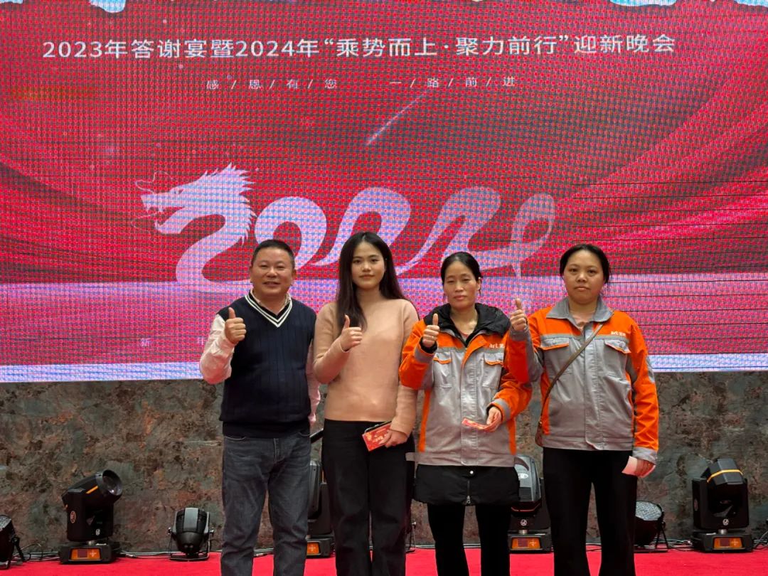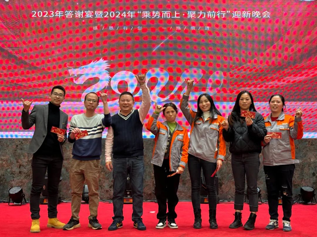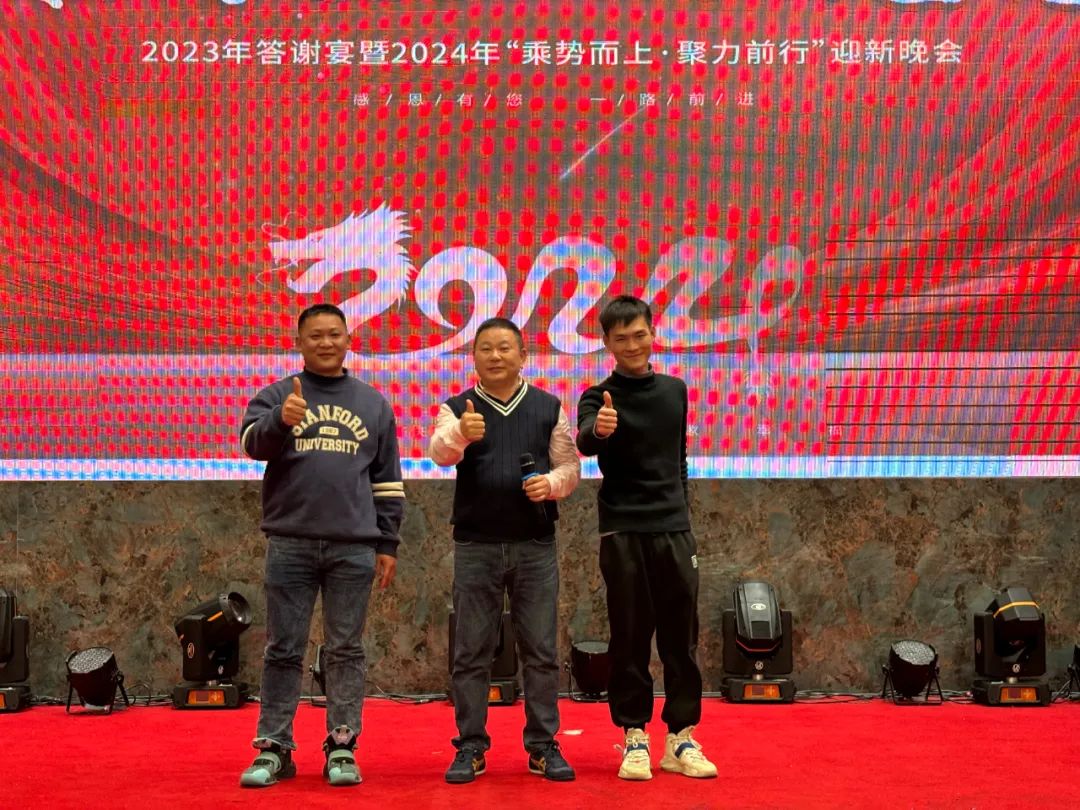 公司張董事長上臺致辭,回顧過去的一年,我們揮別不平凡的2023年,在鏗鏘前行的腳步聲里走進(jìn)2024。喜悅伴隨著汗水,