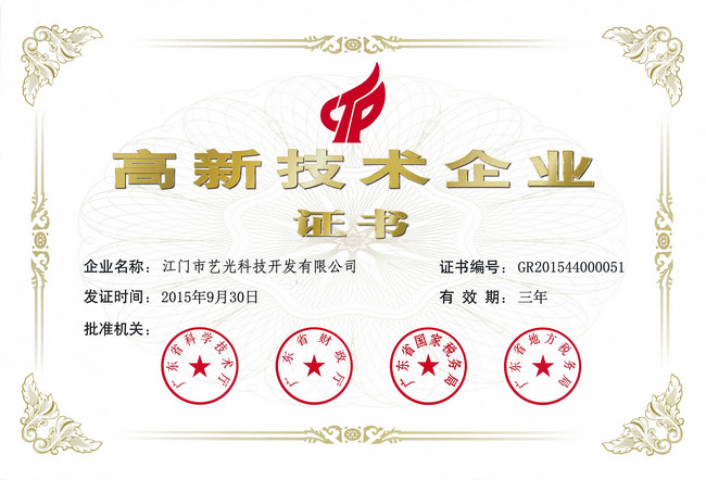 自2001年江門市藝光科技開發(fā)有限公司成立,十五年,從十幾平米的小作坊到近兩萬平米的廠房規(guī)模;十五年,從寥寥幾人到數(shù)百人的規(guī)模;十五年,從最初的幾款產(chǎn)品到成百上千款產(chǎn)品;十五年,從寂寂無名到今天的如日中天。十五年來,藝光科技攬獲多項榮譽,集諸多光芒與榮耀于一身。十五年來,藝光科技創(chuàng)造了一個又一個奇跡。