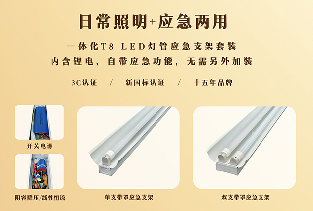 藝光一體化T8 LED燈管應急支架套裝自帶應急功能,無需另外加裝;單支或雙支帶罩應急支架任你選。