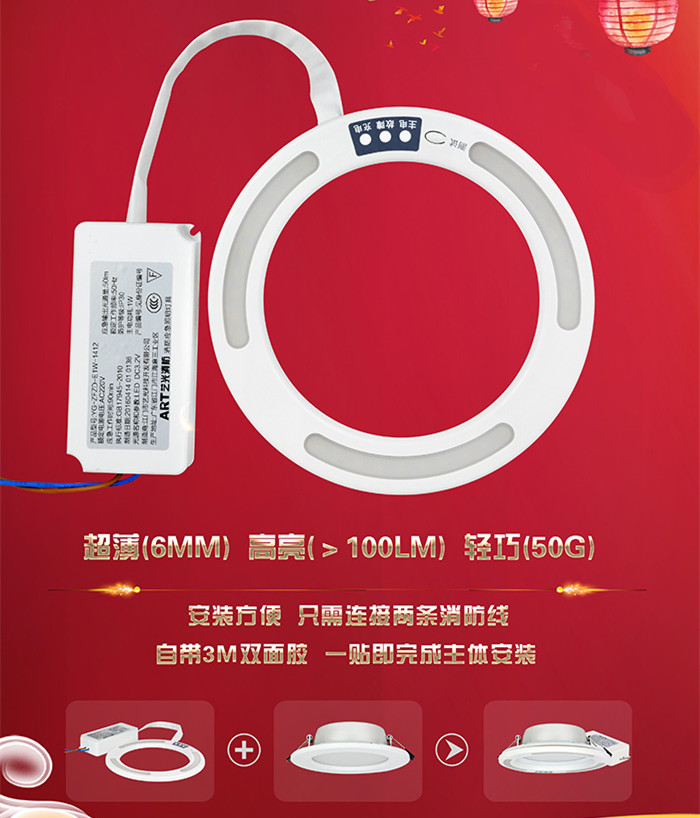 筒燈應(yīng)急伴侶環(huán)——超薄形應(yīng)急吸頂燈