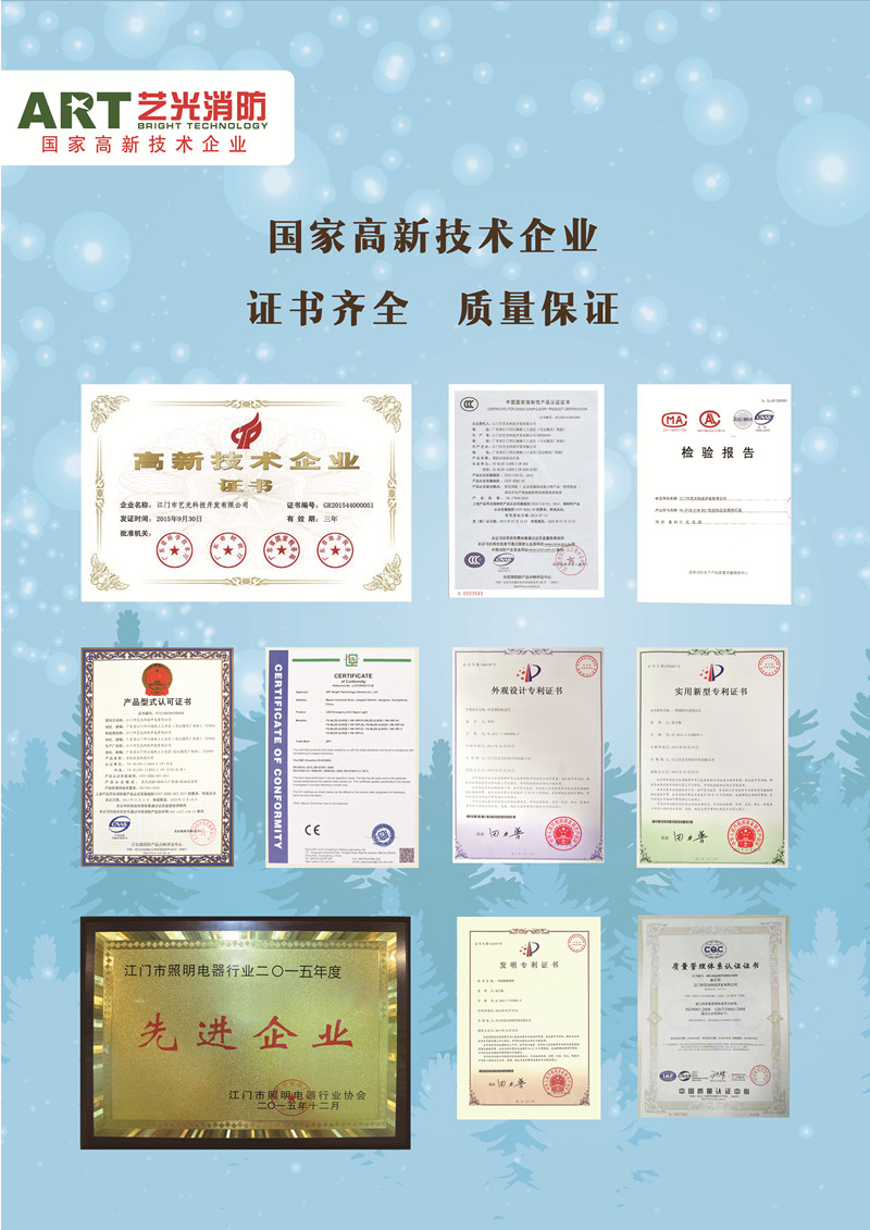 江門市藝光科技開發(fā)有限公司,成立十五年來,一直堅持研發(fā)創(chuàng)新,不斷優(yōu)化生產(chǎn)流程,自去年榮獲國家高新技術(shù)企業(yè)榮譽后,又在今年通過了IS09001國際標(biāo)準(zhǔn)認證,我們堅信,價格并非決定產(chǎn)品市場容量的唯一因素,作為有實力的消防應(yīng)急燈具生產(chǎn)廠家,我們只有不斷優(yōu)化自身條件,才能抵抗外來壓力,持續(xù)健康發(fā)展。
