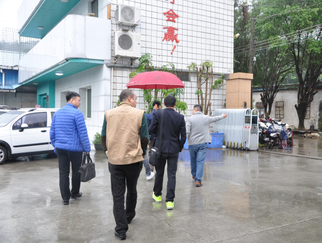 冒著冰冷的大雨,藝光董事長張開振先生引領(lǐng)嘉賓參觀廠區(qū)