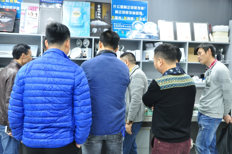 張開振先生為嘉賓講解藝光的新款產(chǎn)品 LED燈管應(yīng)急支架